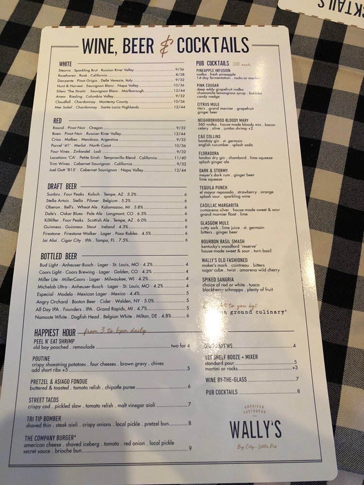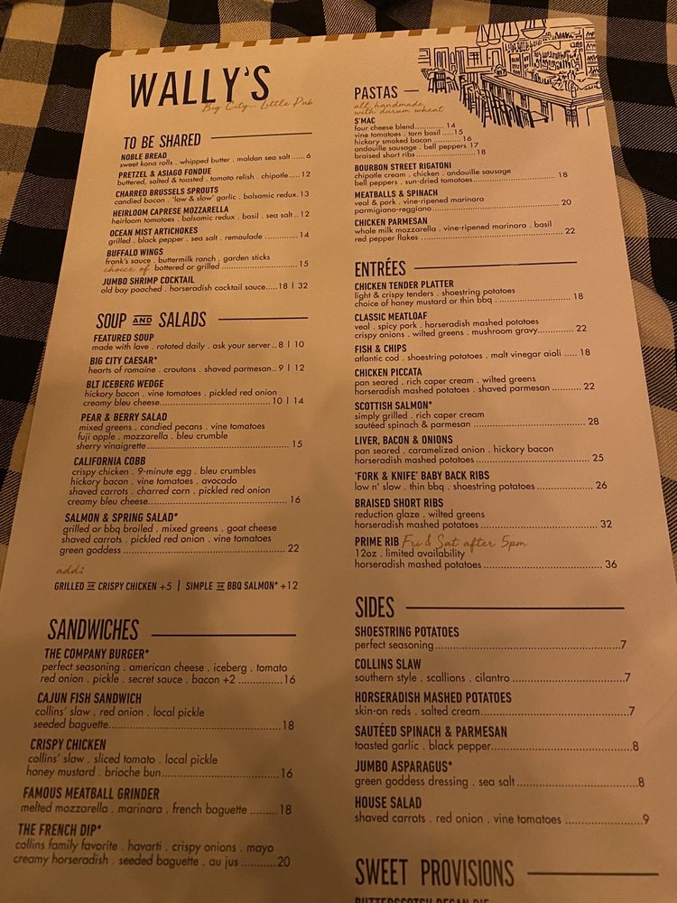 Introducing the menu at Wally's American Gastropub, a charming restaurant located in Scottsdale, AZ. This gastropub offers a variety of options for salad and sandwiches, with vegan choices available. The restaurant provides a cozy atmosphere with outdoor seating and free Wi-Fi. Customers praise the friendly and attentive staff, with special mentions to servers like Lukas and Amy for their exceptional service. Highlights include the delicious fish special, prime rib with horseradish mashed potatoes, chicken Parmesan, and ribs. The menu offers gluten-free options, making it a great choice for those with dietary restrictions. Guests can enjoy a full bar with a selection of cocktails and beers. Overall, Wally's American Gastropub offers a memorable dining experience with high-quality food and excellent service.